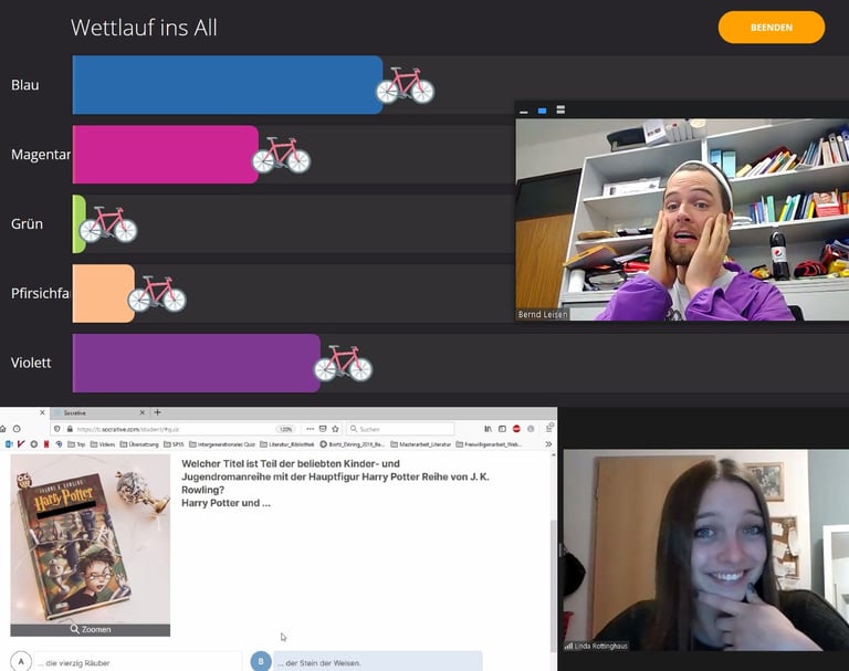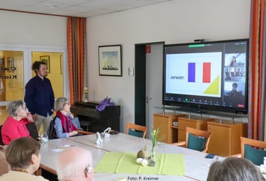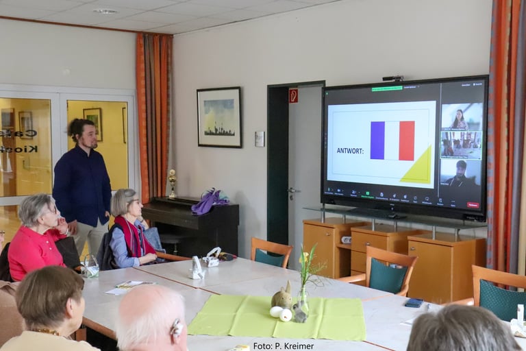 Jeden ersten um 14:30 und jeden dritten Freitag im Monat um 16:30 kommen bei uns Jung und Alt digital in einer Zoom-Videorunde zusammen. In altersgemischten Teams werden dann mehrere Quizrunden gegeneinander gespielt. Es gibt Fragen quer durch die Zeit und rund um die Welt. Einige der Fragen sind leichter die jüngeren und ein anderer Teil leichter für die älteren Quiz-Teilnehmer*innen. Je besser die unterschiedlichen Altersgruppen zusammenspielen, desto höher die Chance zu gewinnen.Das Quiz macht nicht nur Spaß, das Gewinnerteam gewinnt auch einen tollen Preis!